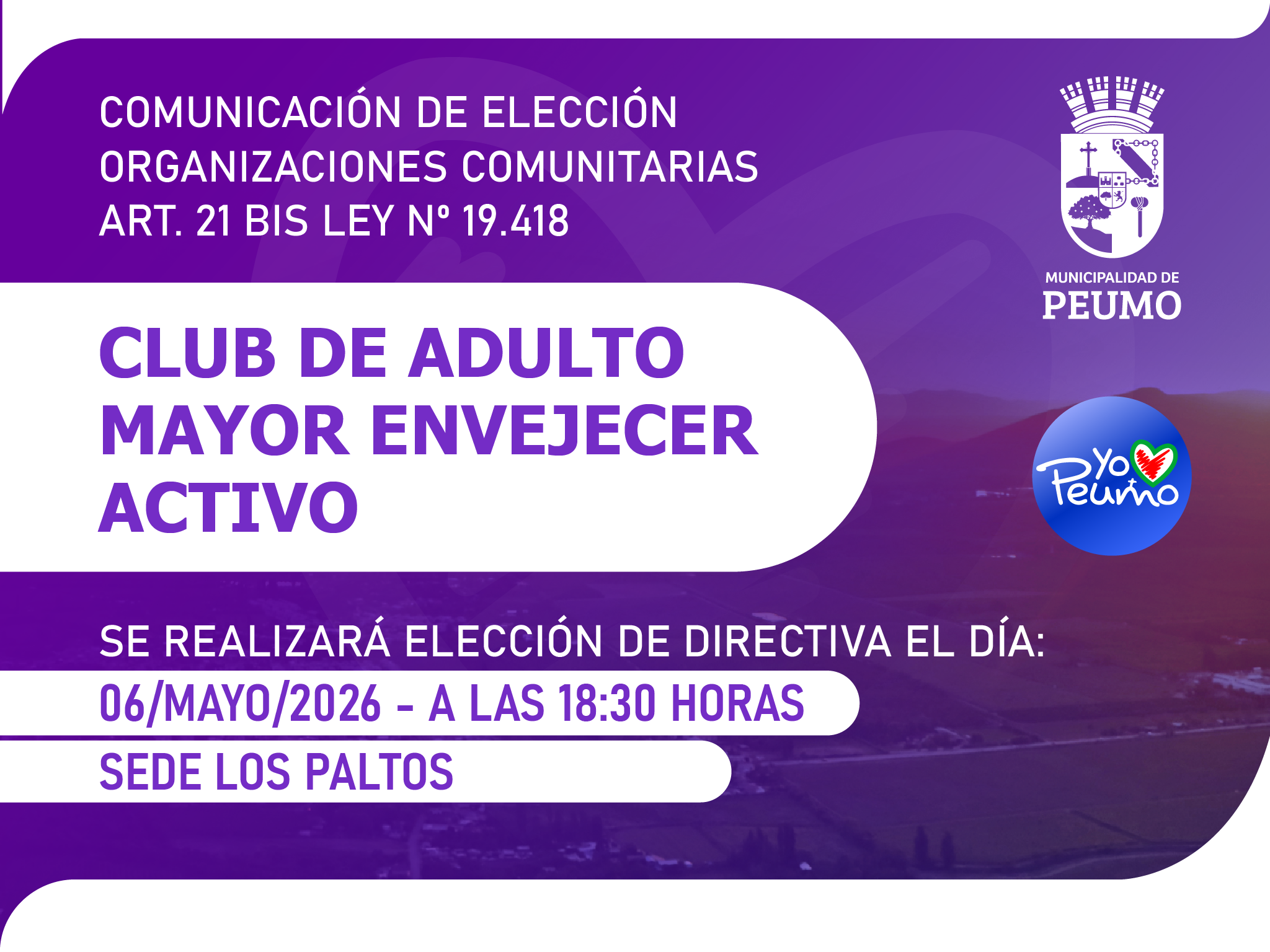 Visita la página web oficial de la Municipalidad de Peumo para mantenerte al tanto de todas las novedades, servicios y eventos en tu comunidad. En nuestro sitio, encontrarás información actualizada sobre trámites, programas locales, noticias de interés y mucho más. Accede a servicios en línea, consulta nuestros recursos y mantente conectado con tu ciudad desde la comodidad de tu hogar.